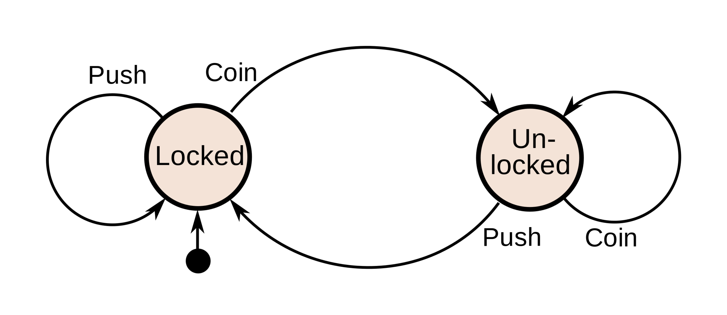 "Simple examples are vending machines, which dispense products when the proper combination of coins is deposited, elevators, whose sequence of stops is determined by the floors requested by riders, traffic lights, which change sequence when cars are waiting, and combination locks, which require the input of a sequence of numbers in the proper order."