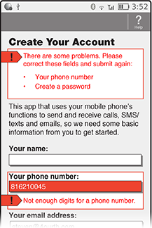 " Yahoo!'s registration form only validates an answer once someone has indicated he or she is done by moving to the next input field. [...] When validating people's answers inline, do so after they have finished providing an answer, not during the process."