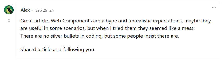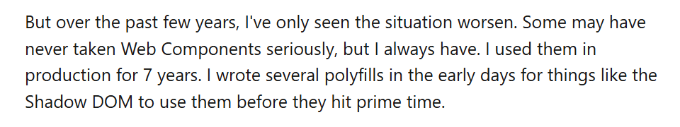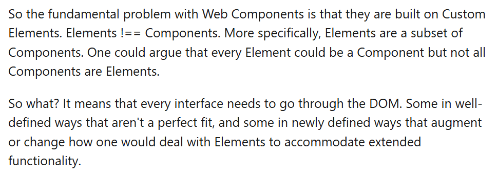 <my-element>Hello World</my-element>console.log(element instanceof HTMLElement) // true<hello-world>Look mom, no framework!</hello-world>const input = createRef<HTMLInputElement>()