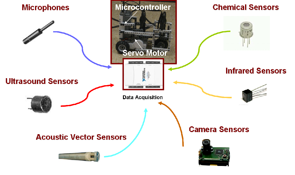 3D vision, Lidar, Radars, Wheel encoders, IMU, monocular cameras, bump switch, etc.