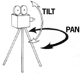 Turning left and right is known as "panning" or pan left or right. Looking up or down is known as "tilting" or tilt up or down.