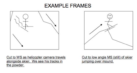 - If movement occurs within the frame, indicate with arrows that show action direction. This includes both character/object movement as well as camera movement. Indicate camera movements such as: camera dolly in/out, tracking shot, pan, tilt, zoom, barrel roll etc.