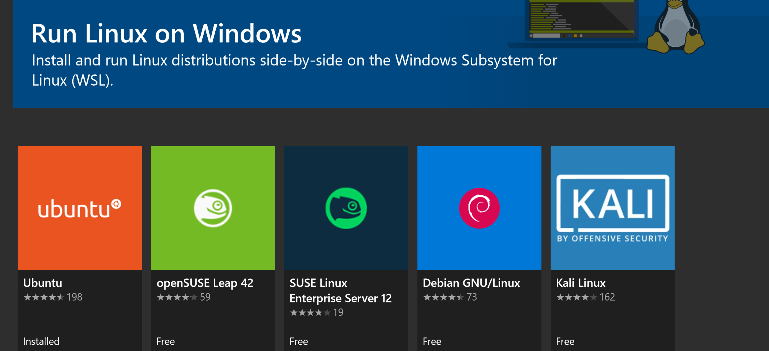 Then go to the windows store and select the version of Linux you would like to install