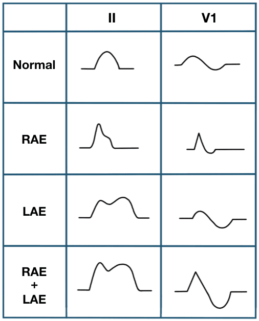 Biphasic p in II with V1 = and - deflection biatrial enlargement