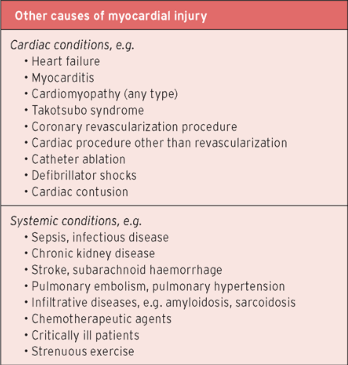 Detection of an elevated cTn value above the 99th percentile URL is defined as myocardial injury. The injury is considered acute if there is a rise and/or fall of cTn values.