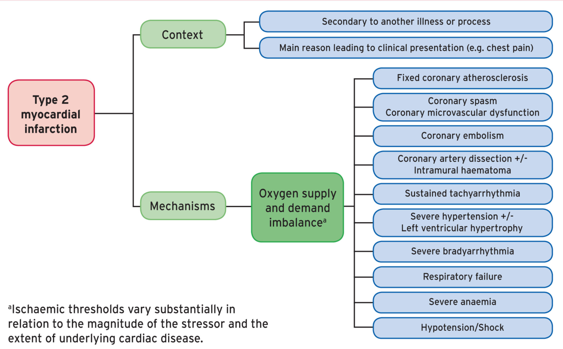 - New/horizontal or downsloping ST depression (>0.5mm) in 2 contiguous leads