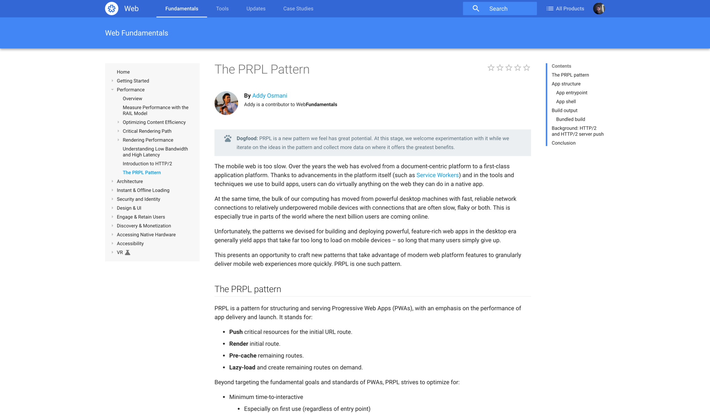 An intro into Progressive Web Apps, the PRPL Pattern, webpack, and how they all work together!