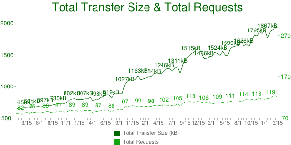 (Source: HTTP Archive, 2011-present, Alexa Top 1,000 sites)