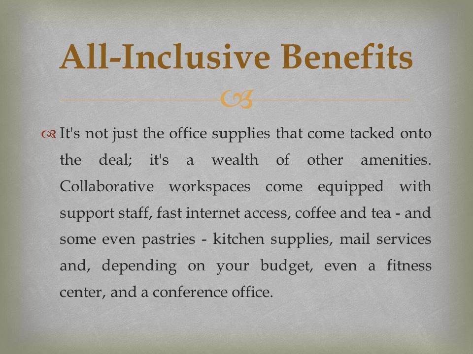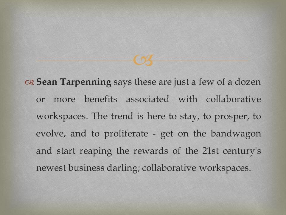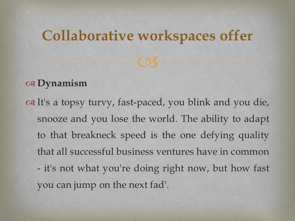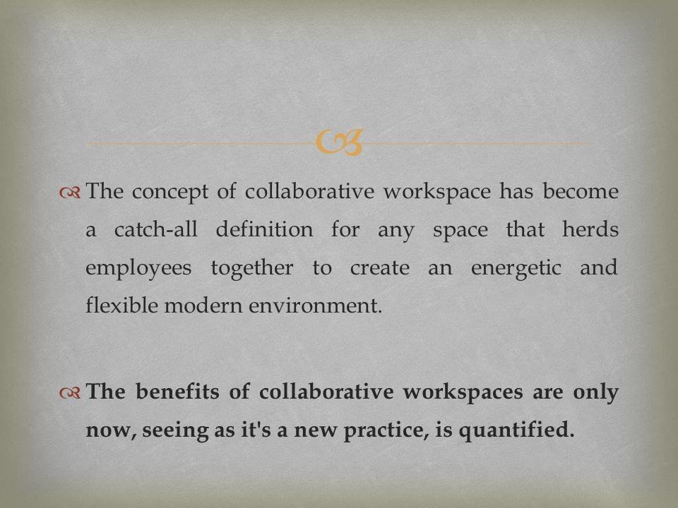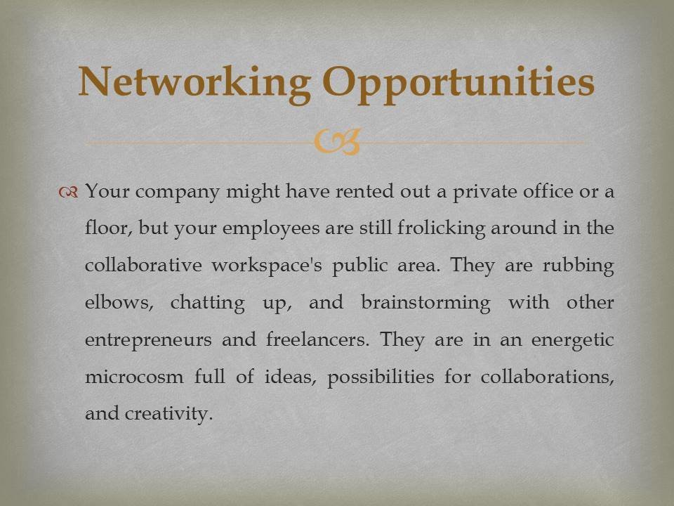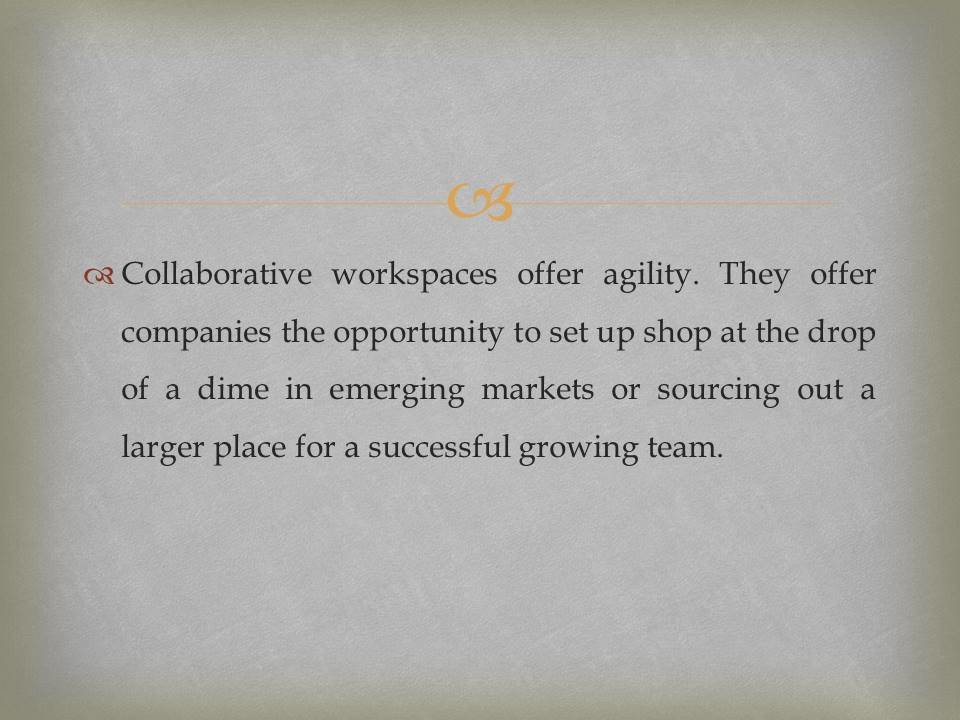 Collaborative workspaces are offices in which employees of various companies work under one roof.