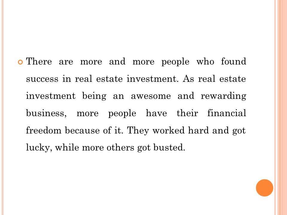 There are more and more people who found success in real estate investment. As real estate investment being an awesome and rewarding business, more people have their financial freedom because of it.