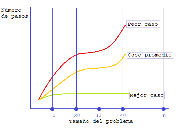 Generalmente se analiza el mejor caso, el caso promedio y, sobre todo, el peor caso para entender cómo crece su tiempo de ejecución.