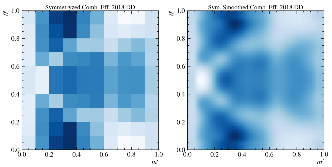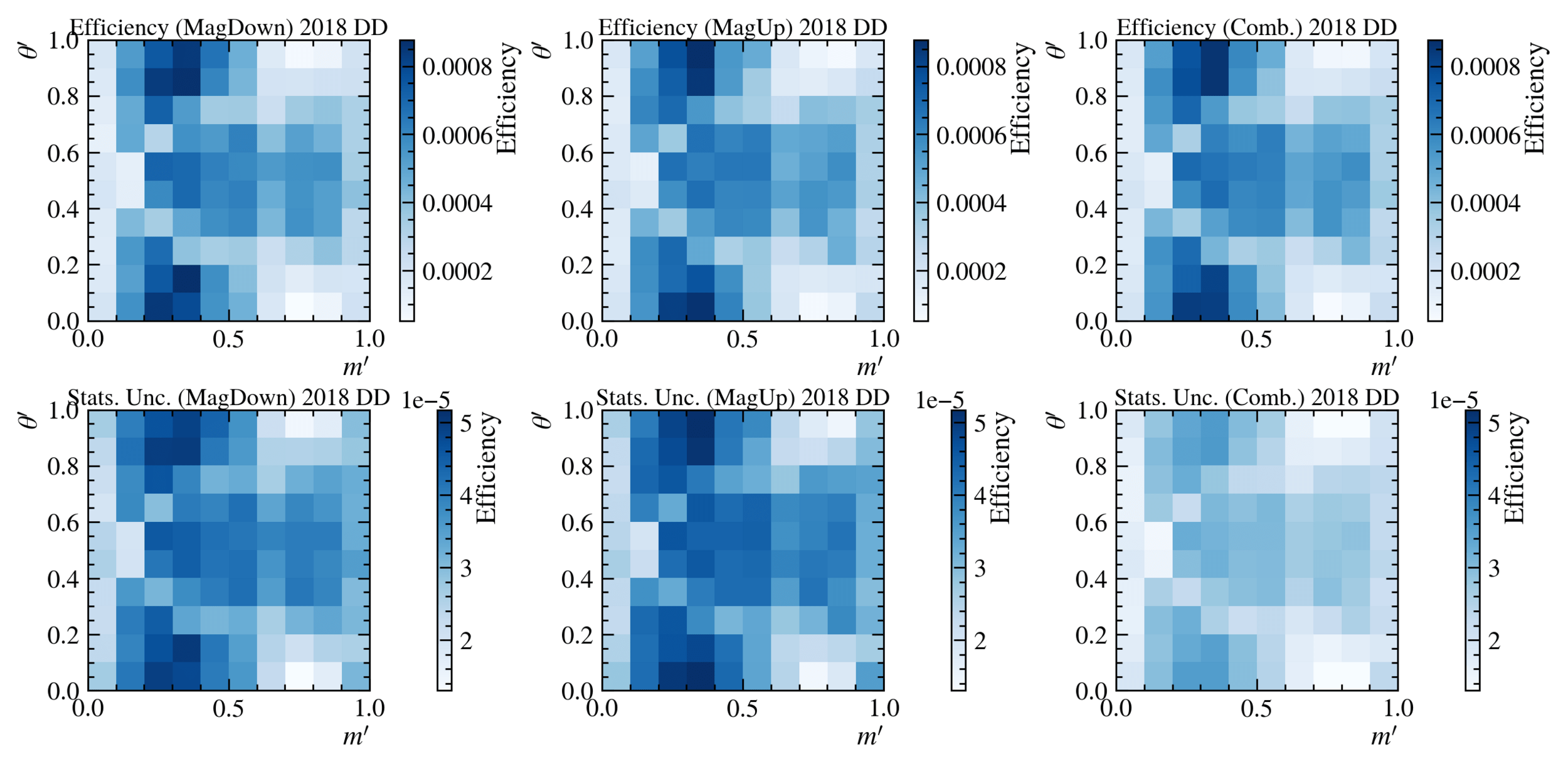 - Efficiency maps are obtained from the BF machinery for each polarity for a given binning.