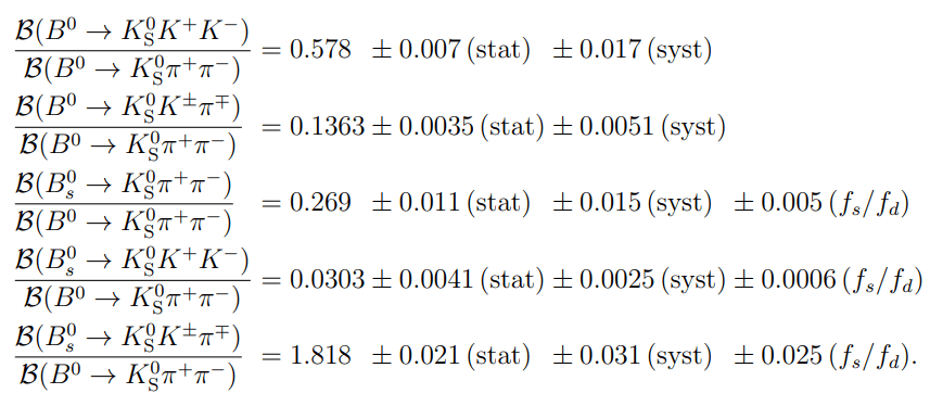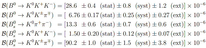 \(B_{(s)}^{0}\rightarrow K_{S}^{0}h^{+}h^{'-}\) BF summary