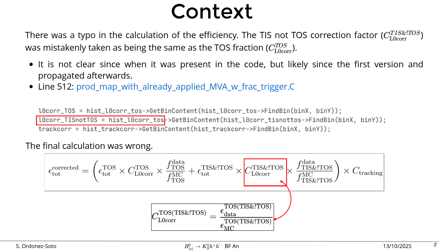 Figure 1. The oscillation of the \(B_{(s)}^{0}\rightarrow K_{S}^{0}h^{+}h^{'-}\) BF analysis between 2CWR and different issues (missing veto, L0 eff corr bug, etc)