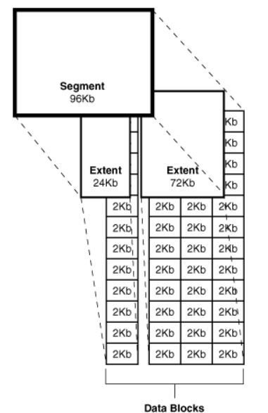 - Segments, donde se almacenan los datos lógicamente