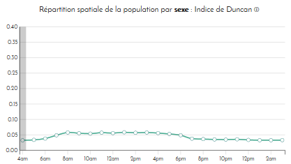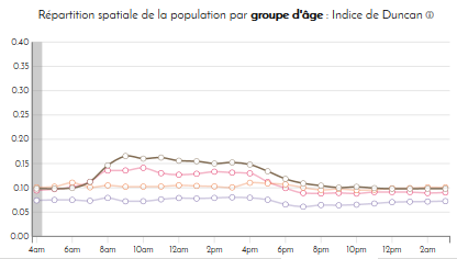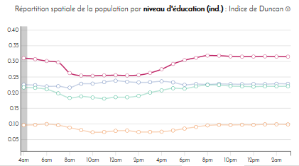 Une ségrégation qui augmente en journée selon l'âge et le sexe mais qui baisse selon l'éducation