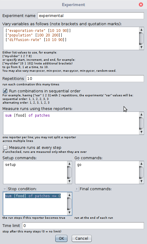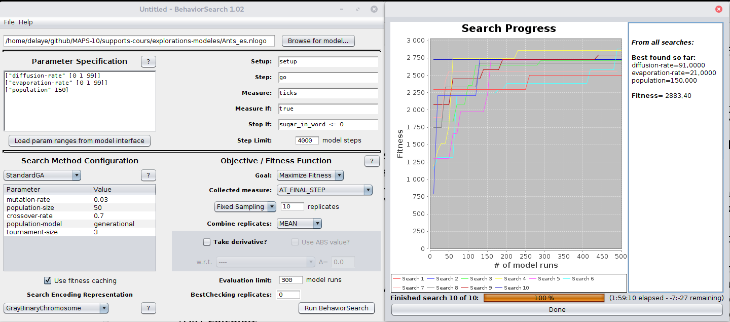 exploration -< (model on env hook ToStringHook())Plusieurs types de plan d'expériences : Plan complet, LSH, Analyse de sensibilités, Algorithmes Evolutionnaires, etc.
