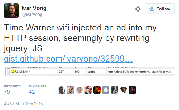 - 2014: Company markets “Wi-Fi monetization strategies” to help ISPs “capitalize on JavaScript-injected ad campaigns…”