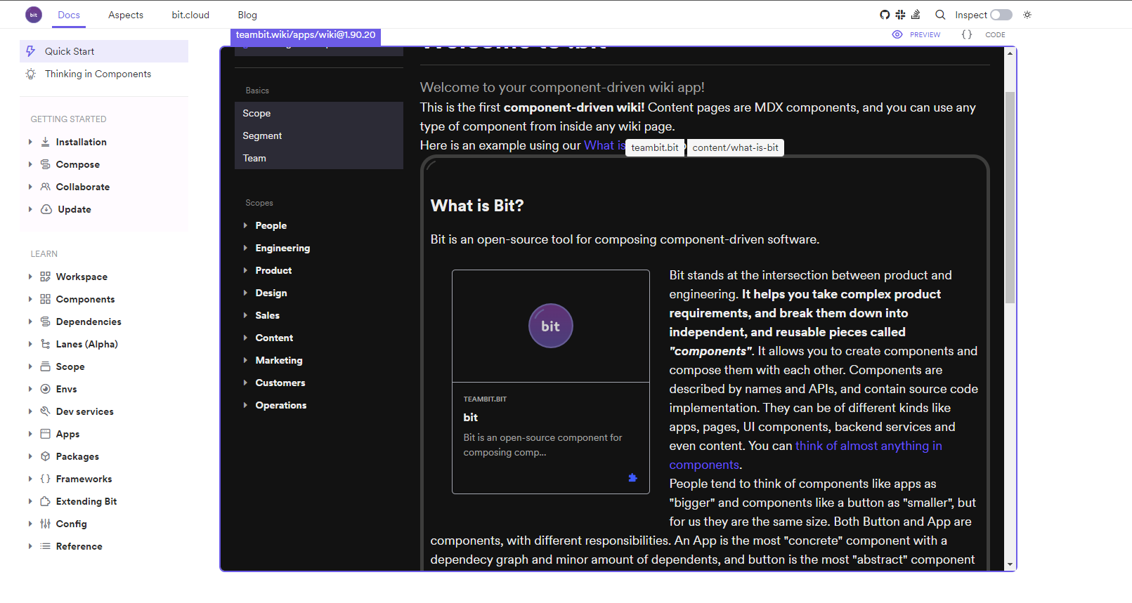 component shared to bit.dev is analyzed, hosted, rendered and documented in one place