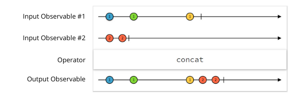 concatMap() - Each new inner Observable is concatenated with the previous inner Observable using concatAll