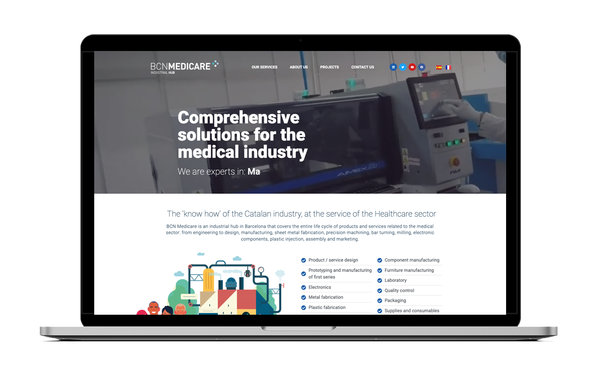 TOTAL PLANNING, in order to continue expanding in the medical technology sector, is part of the BCN MEDICARE INDUSTRIAL HUB. In it, you will find the 'know how' of the Catalan industry at the service of the Healthcare sector. We intend to cover the life cycle of products and services related to the medical sector: from engineering to design, manufacturing, sheet metal, precision machining, precision machining, milling, electronic components, plastic injections, assembly and marketing.