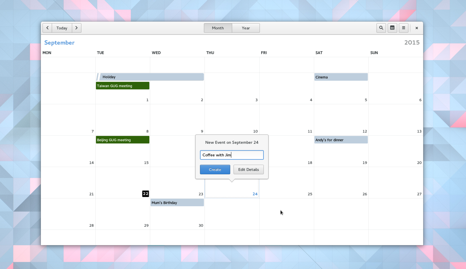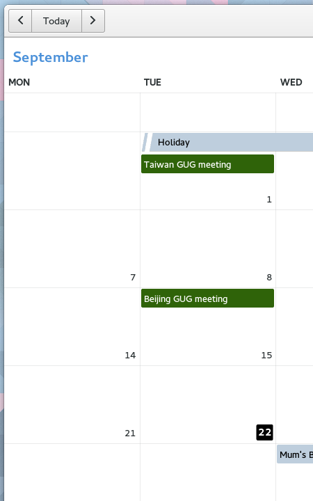 Aplikasi Calendar yang terintegrasi dengan layanan daring, kini terpisah dari Evolution.