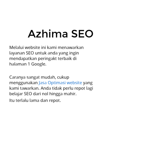 SEOBLank Indonesia merupakan penyedia jasa seo murah bergaransi uang kembali dan halaman 1 google. Lihat selengkap http://www.azhima.id