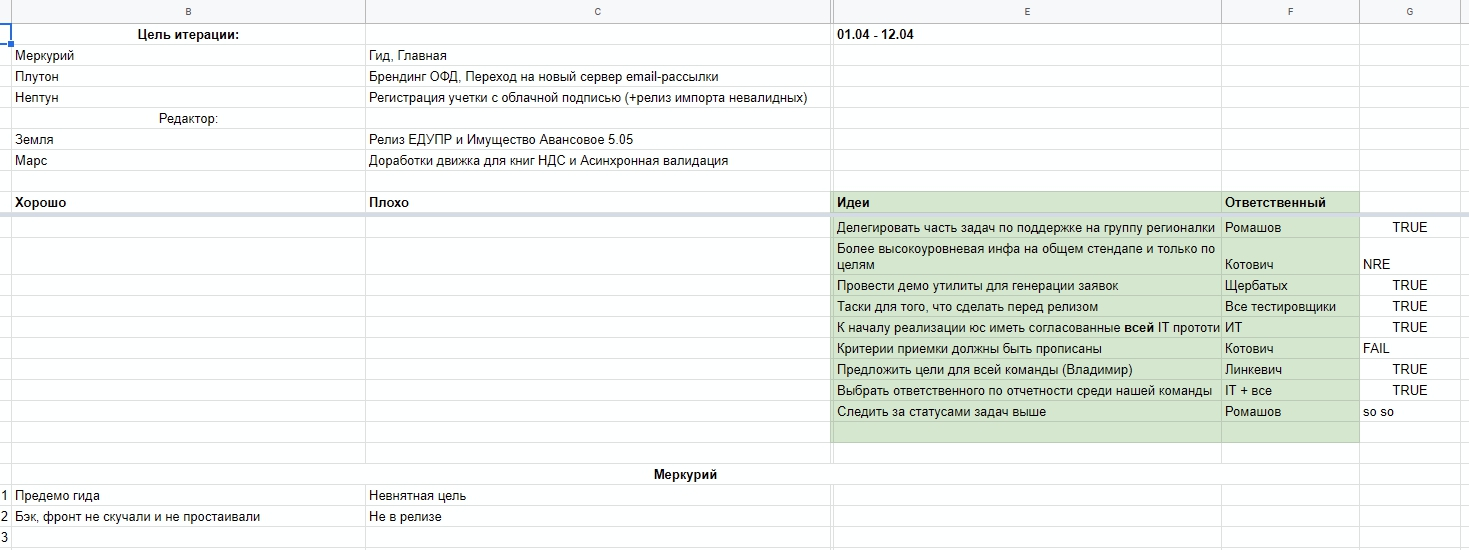 - Минусы отфильтровать, отмозгоштурмить, зафиксировать решение, назначить ответственного, следить за выполнением