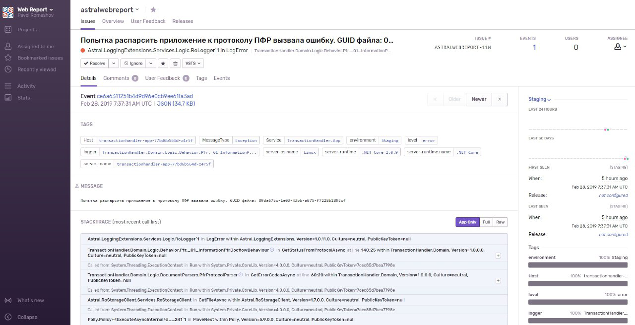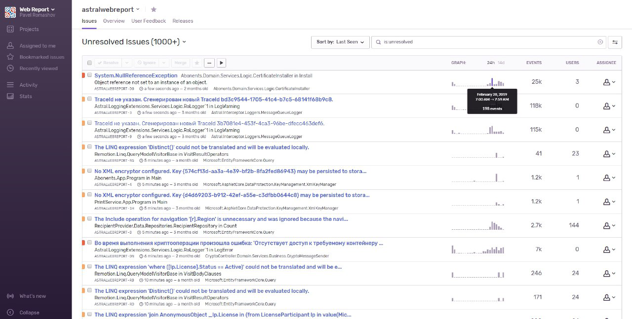 Sentry - комплексное решение по сбору, анализу и помощи в быстром устранении ошибок
