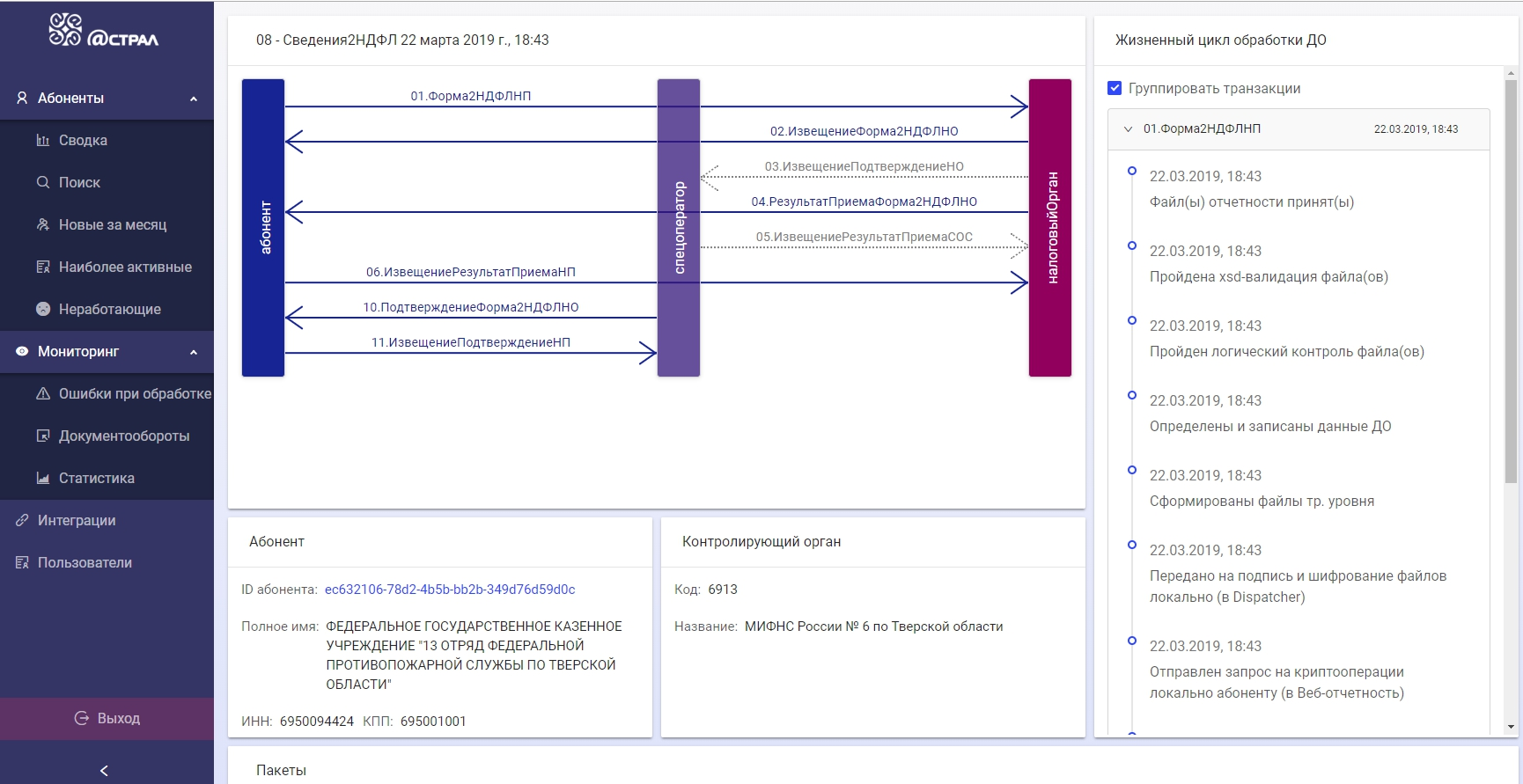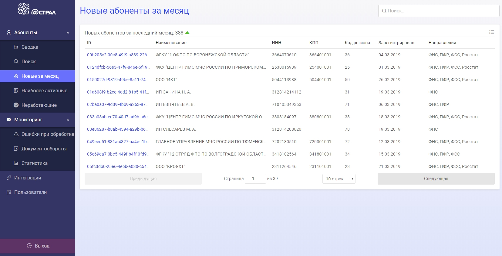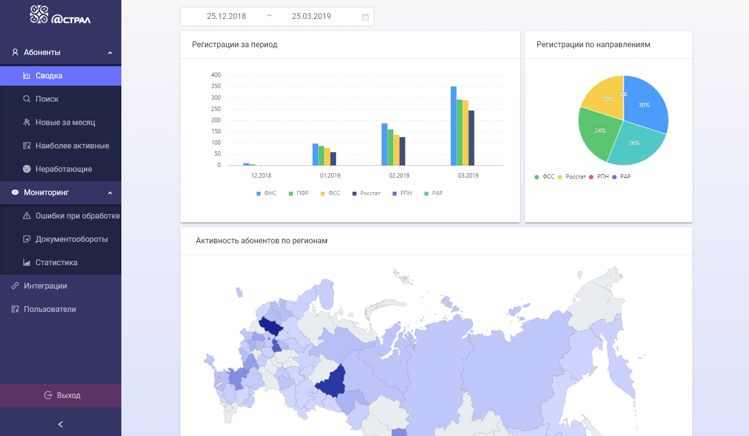 - Мониторинг регистраций и абонентов