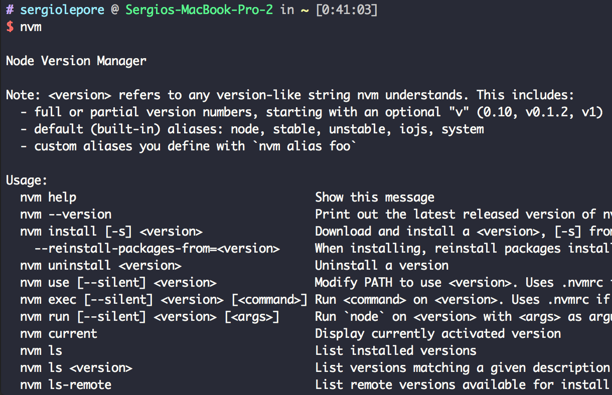 nvm ls