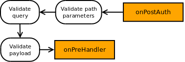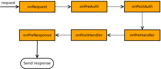 between onPreHandler and onPostHandler we can change reply(), i.e we can change the response
