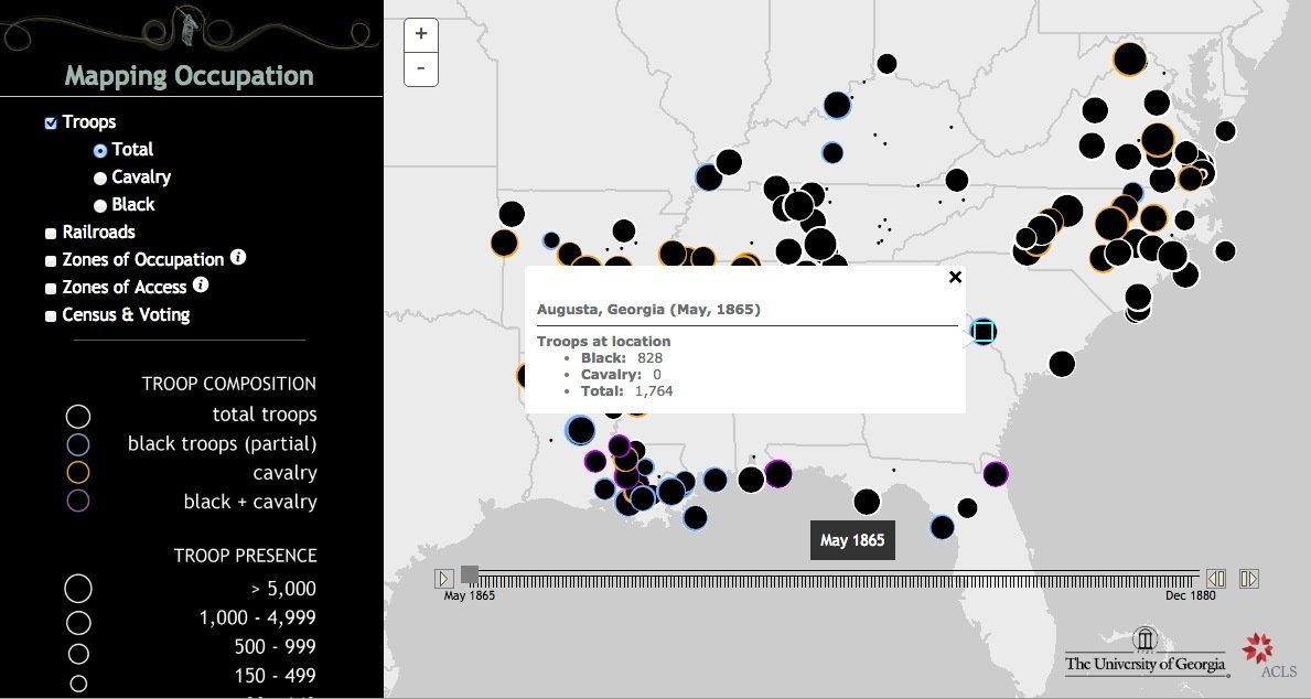 Downs & Nesbit, Mapping Occupation: Force, Freedom, and the Army in Reconstruction, http://mappingoccupation.org/map/index.html