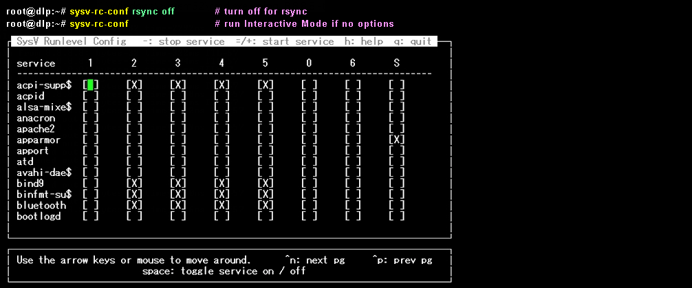Penggunaan dasar sebagian besar sama dengan chkconfig pada sistem RedHat