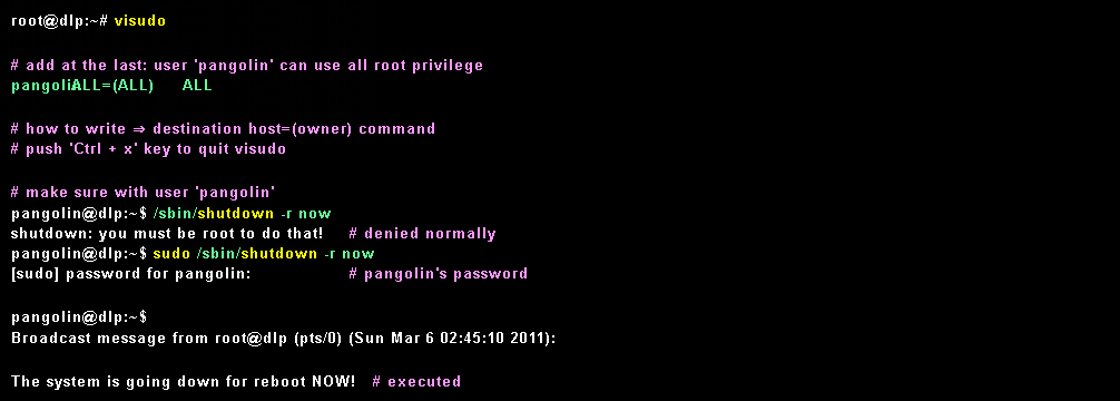 Mentransfer perintah dengan hak istimewa root untuk pengguna