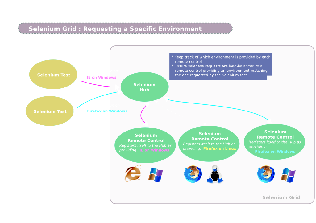 Grid uses a DefaultCapabilityMatcher to match the machine(Node) requested by test script in the grid setup. Currently it uses only the Platform, Browser and its version to find the requested node.
