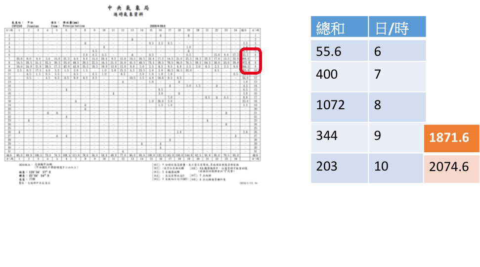 莫拉克颱風於98年8 月6 日至9 日期間,