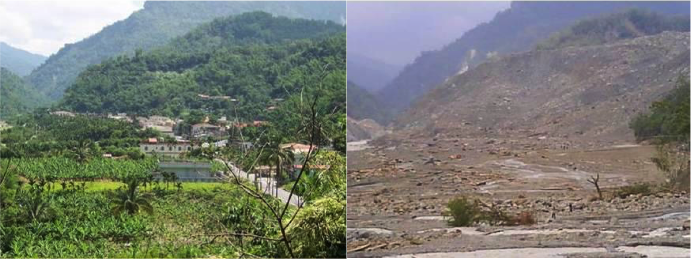 土石將10至18鄰沖毀,並阻斷了旗山溪由北往南流的溪水,形成堰塞湖。不久後,潰堤,第9鄰緊接著亦被土石及河水淹沒。