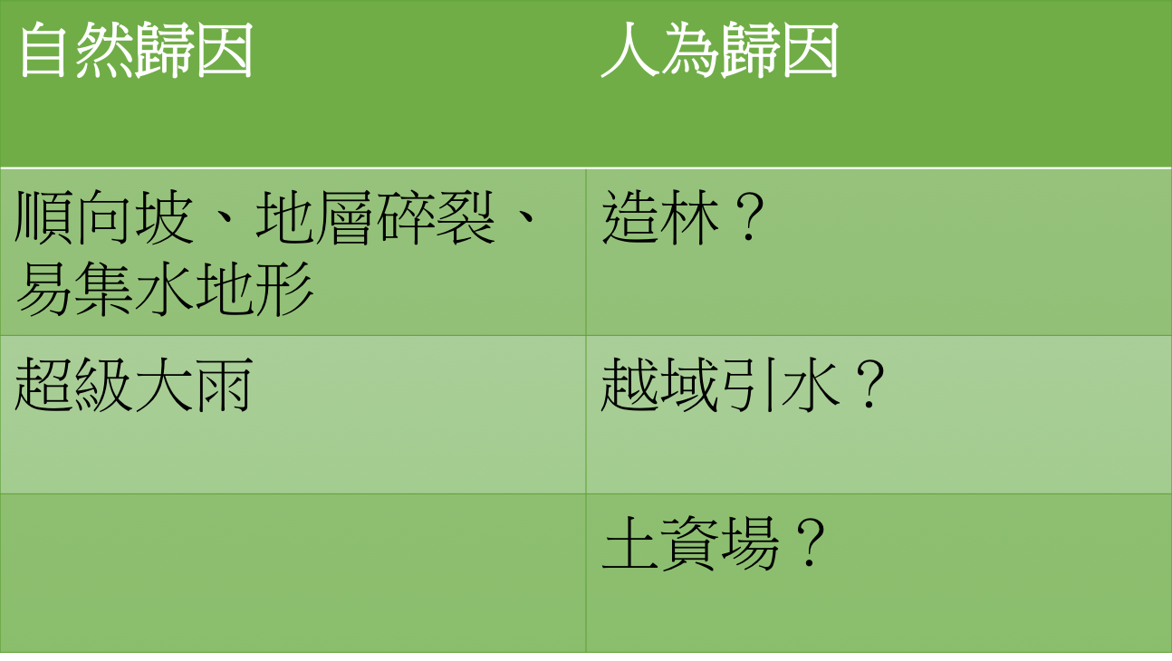 1. 獻肚山崩塌與堰塞湖潰堤係天然災害,但不可預測。