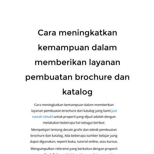Cara meningkatkan kemampuan dalam memberikan layanan pembuatan brochure dan katalog untuk properti yang dijual adalah dengan melakukan beberapa hal