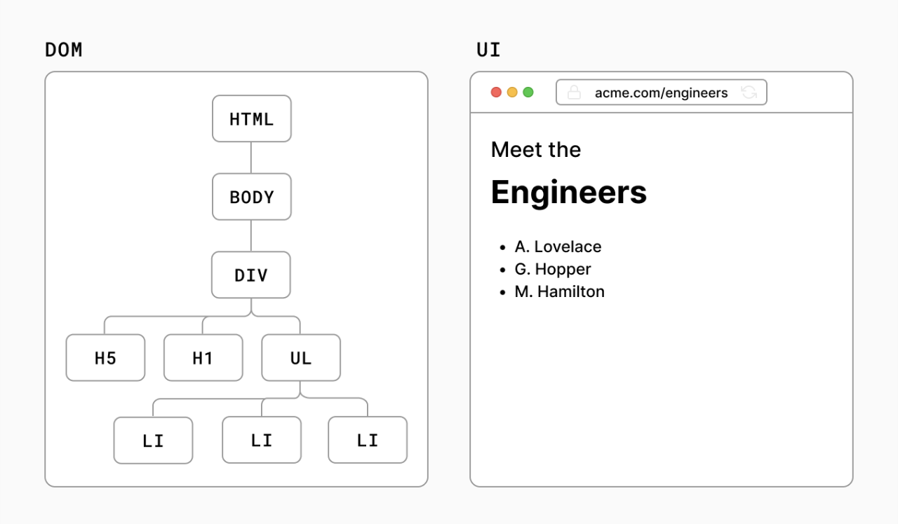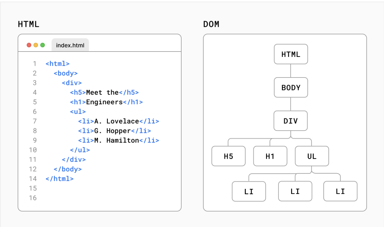 - The DOM is constructed as a tree of objects, where each object represents an element in your HTML document