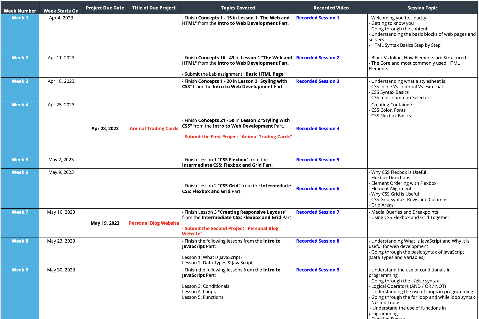 - Highly recommend pairing the lessons in this track alongside what you are learning here through Udacity. The lessons are project-based and you learn each concept through hands-on exercises.