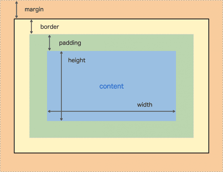 - Defines an element as a rectangular box with four areas: