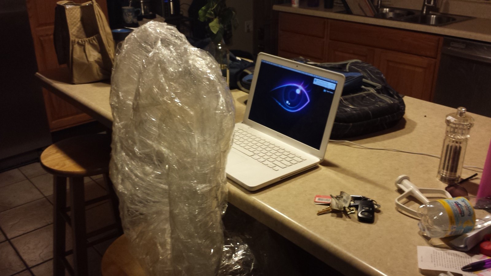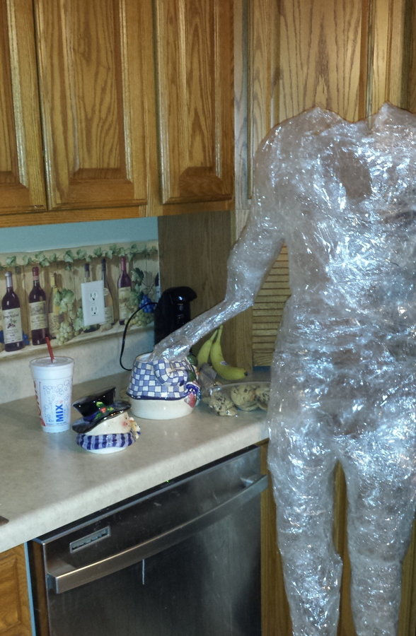 Wrapping Seamus in Plastic Wrap