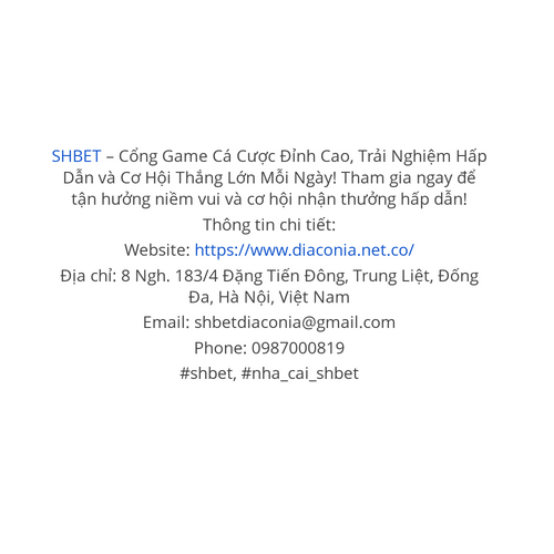 SHBET – Cổng Game Cá Cược Đỉnh Cao, Trải Nghiệm Hấp Dẫn và Cơ Hội Thắng Lớn Mỗi Ngày! Tham gia ngay để tận hưởng niềm vui và cơ hội nhận thưởng hấp dẫn! Thông tin chi tiết: Website: https://www.diaconia.net.co/ Địa chỉ: 8 Ngh. 183/4 Đặng Tiến Đông, Trung Liệt, Đống Đa, Hà Nội, Việt Nam Email: shbetdiaconia@gmail.com Phone: 0987000819 #shbet, #nha_cai_shbet