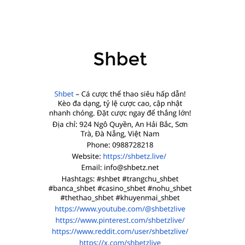Shbet – Cá cược thể thao siêu hấp dẫn! Kèo đa dạng, tỷ lệ cược cao, cập nhật nhanh chóng. Đặt cược ngay để thắng lớn! Địa chỉ: 924 Ngô Quyền, An Hải Bắc, Sơn Trà, Đà Nẵng, Việt Nam Phone: 0988728218 Website: https://shbetz.live/