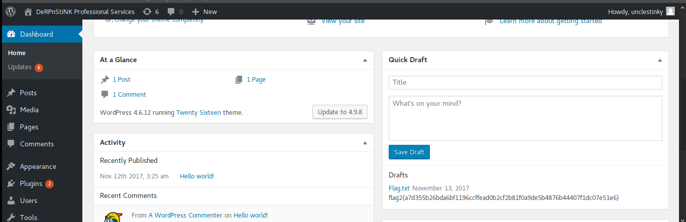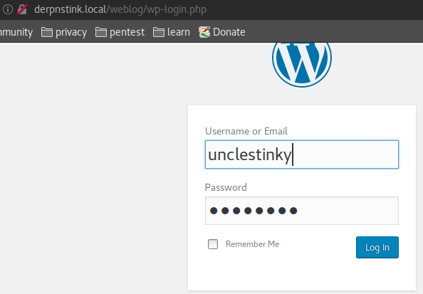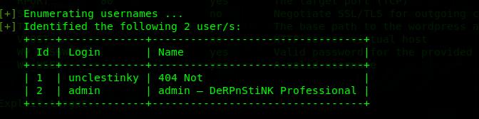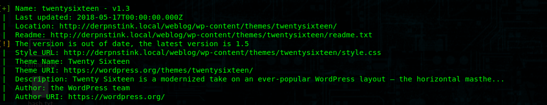 wpscan --url http://derpnstink.local/weblog/ --enumerate p --enumerate t --enumerate u --enumerate tt