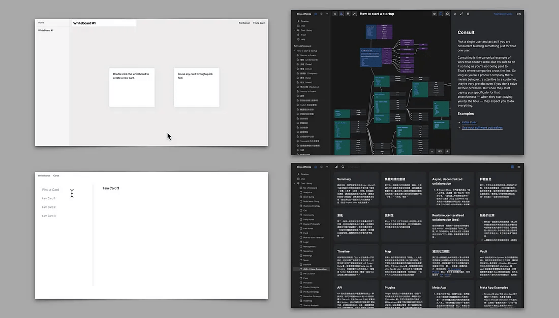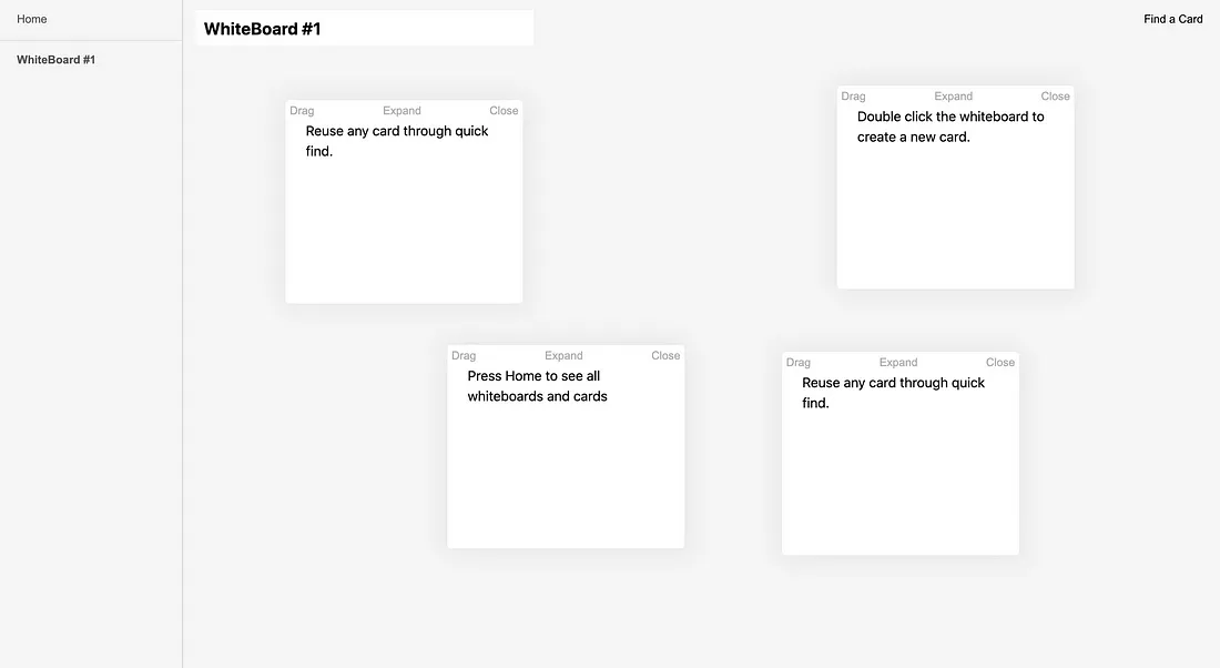 三個功能:建立白板、建立文字卡片、把文字卡片