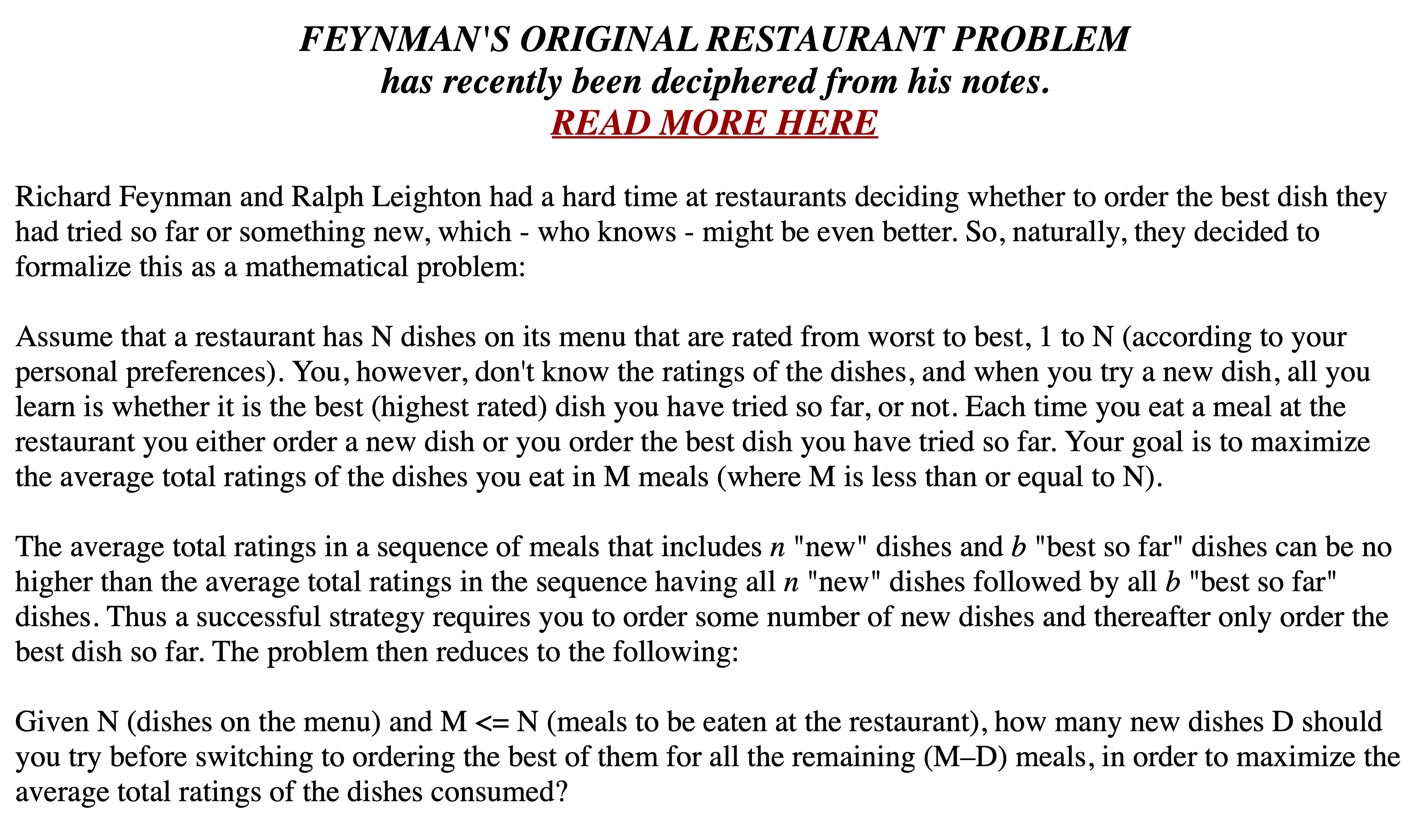 | \(T\) | Unknown; must learn by trying |