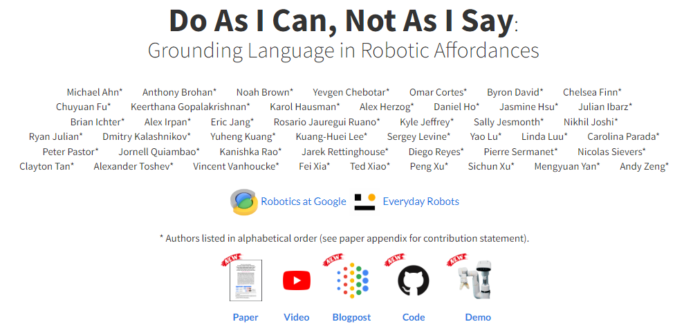 Do As I Can, Not As I Say: Grounding Language in Robotic Affordances, Ahn et al. , 2022